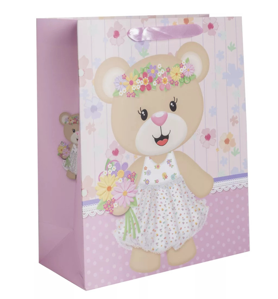 Ajándéktasak Macilány virágos 18x23 cm