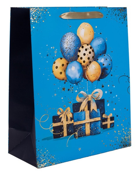 Ajándéktasak kék ajándékok lufival 31x42 cm