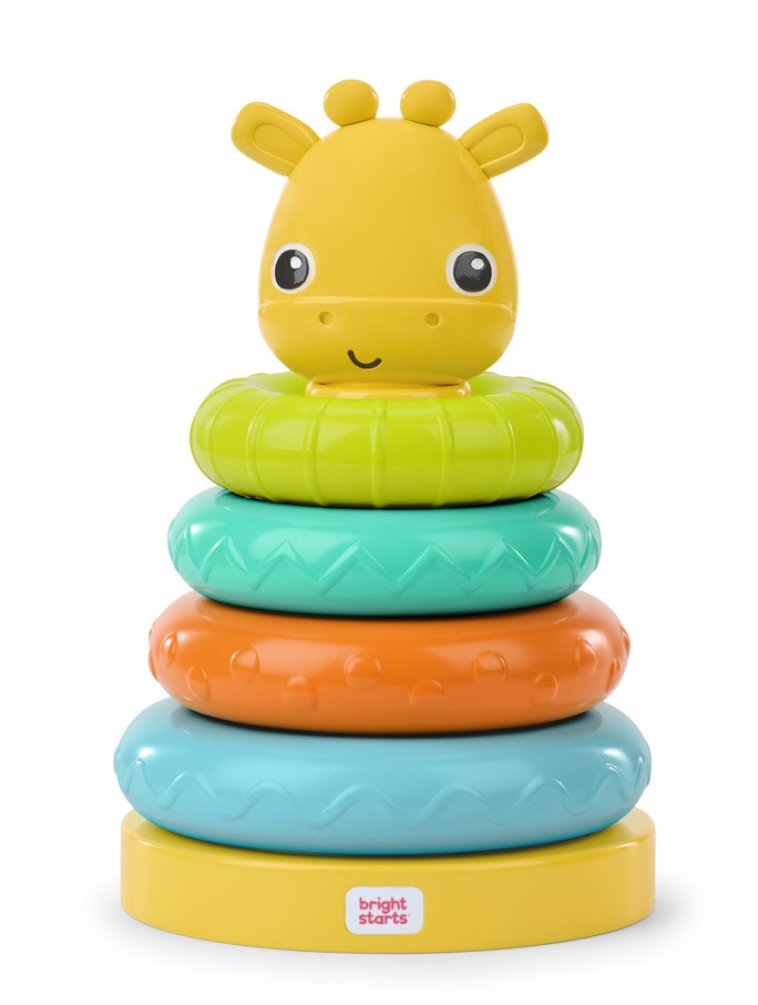 Fedezze fel a játékosság új magasságait a Bright Starts zsiráf rakosgatóval – egy szórakoztató és bájos gyűrűtorony, amelyet gyermeke imádni fog!