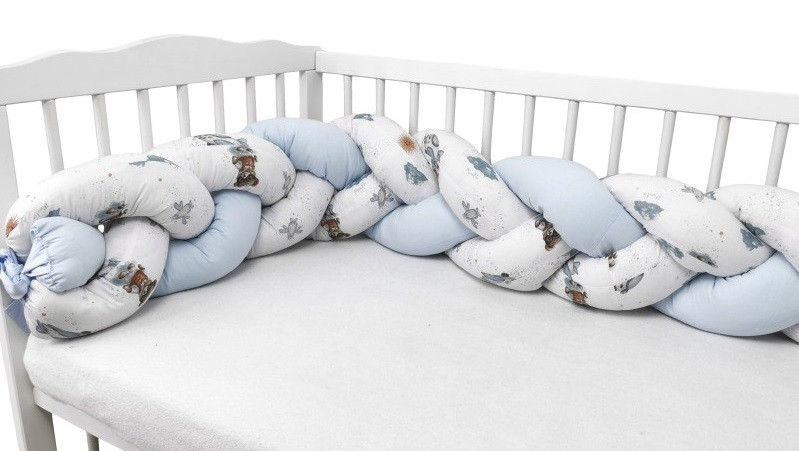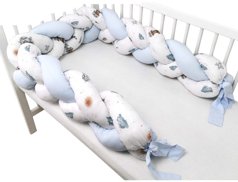 Baby Shop prémium fonott fejvédő kiságyba 250cm - Kék maci