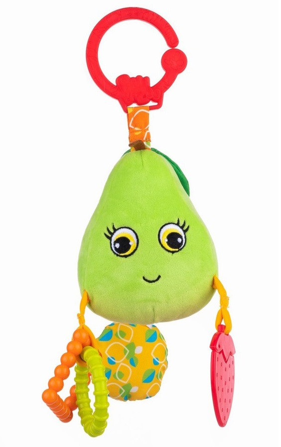 A játékon található praktikus csíptető lehetővé teszi, hogy könnyedén rögzítsd babakocsira, kiságyra vagy autósülésre - így a körte mindig a baba közelében lehet.