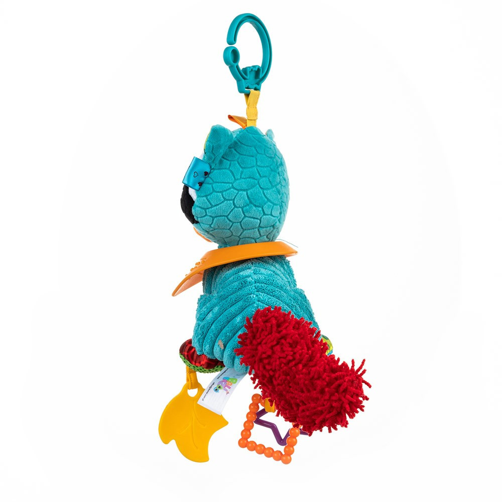 A játék különböző textúrájú és funkciójú elemekkel készült, amelyek stimulálják a baba érzékszerveit: