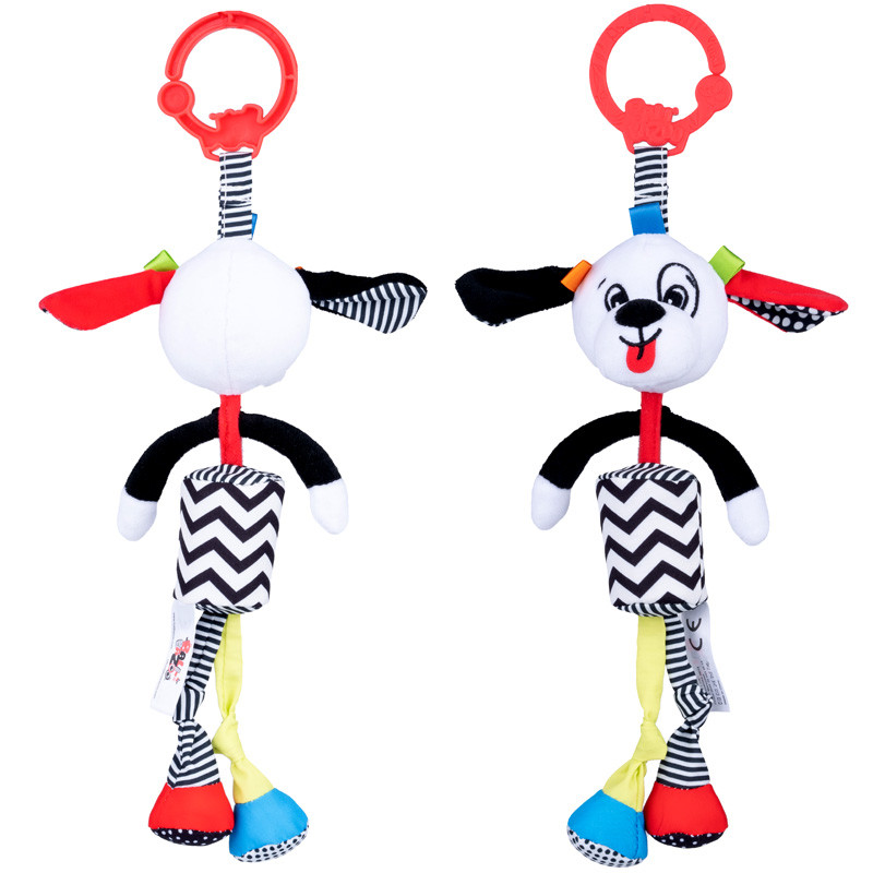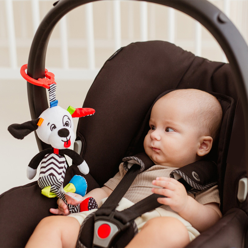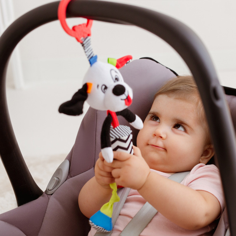 Tündéri megjelenésű, puha, babytex anyagból készült plüss kutya figura babakocsicsörgő funkcióval, ami garantáltan kisbabád kedvence lesz.