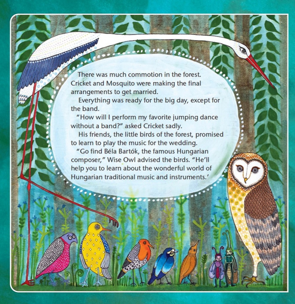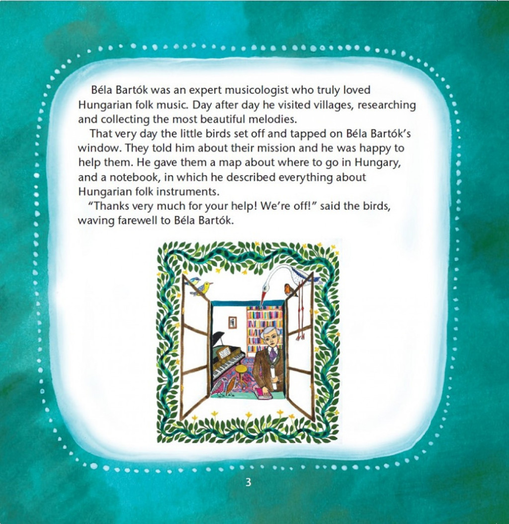 Have you ever heard of the hurdy-gurdy? Do you know how to play the bagpipe? What does the cimbalom sound like? Learn all about the traditional folk musical instruments and songs of the Hungarian countryside. The famous Hungarian composer, Béla Bartók, and the birds of the forest will guide you on your way. In this book, with the help of the 13 buttons sound module, children can get a real, authentic yet modern experience of Hungarian folk heritage. The story by Lilla Tapolczai-Zsuráfszky, the music played by her friends and the illustrations by Anna Kiss will help the reader to become acquainted with this wonderful world.