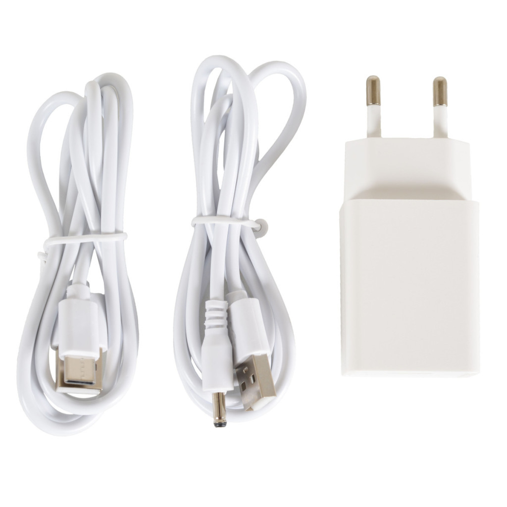- A kamera közvetlenül csatlakozik az elektromos hálózathoz a mellékelt tápkábel segítségével, míg a szülői eszköz beépített újratölthető lítium-ion akkumulátorral (3V / 3000 mAh) rendelkezik, amely egy teljes feltöltéssel akár 10 órányi működést biztosít.