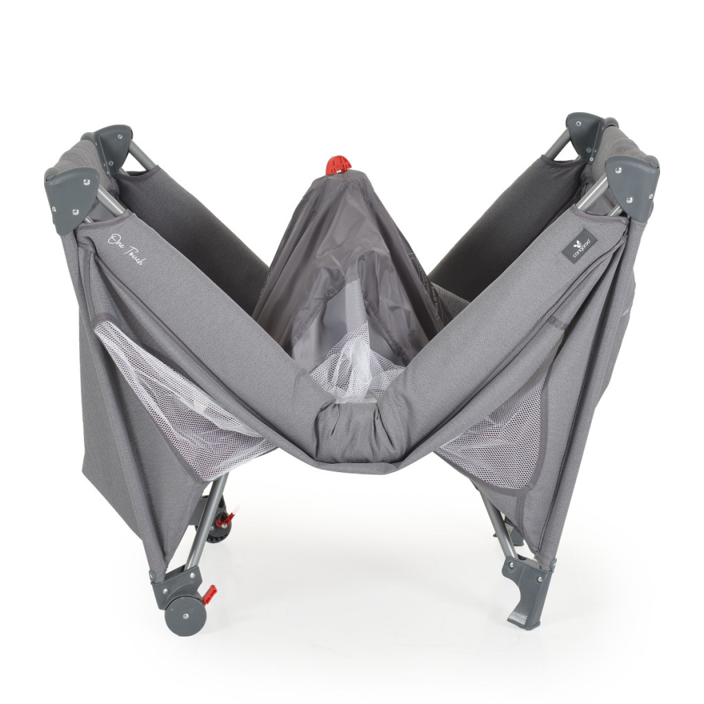 A Cangaroo One Touch kiságy egykezes összecsukó mechanizmusával tűnik ki, amelyet kifejezetten a szülők kényelmére terveztek – a kiságy pillanatok alatt összecsukható vagy felállítható, különösebb erőfeszítés nélkül.