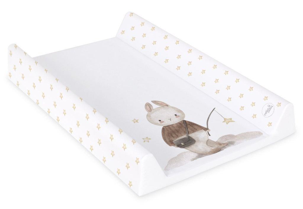 A merev pelenkázólap aljában egy deszka van, és négy láb szerelhető rá, hogy megakadályozza annak elmozdulását a kiságyon. A puha töltelék miatt a pelenkázás kényelmes és pihentető. A párnázott pelenkázólap a legmagasabb minőségű tanúsított fóliából készül - biztonságos a baba finom bőrének és könnyen tisztítható.