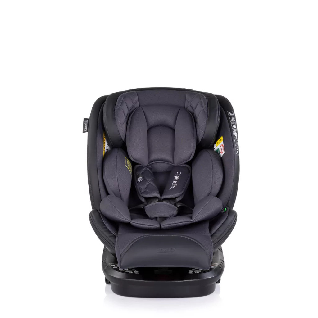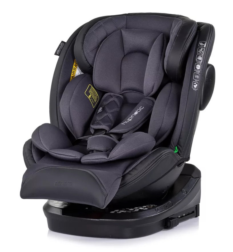 360 fokban forgatható autósülés, 40-150 cm-ig. Kiválóan párnázott autósülés, így már a legkisebbek is kényelmesen utazhatnak.