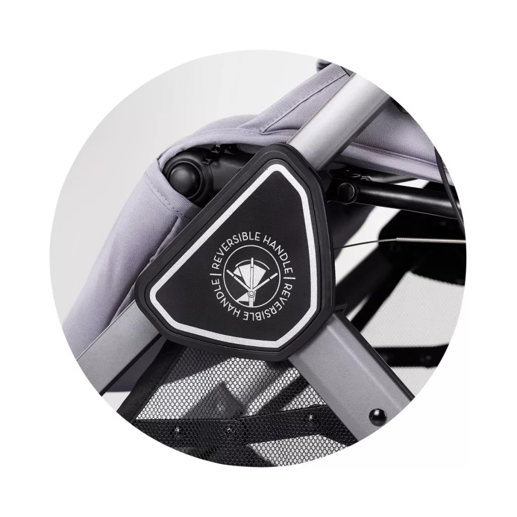 - Egyetlen gyors mozdulattal a megfordítható fogantyú lehetővé teszi a szülővel szembeni vagy a menetiránynak megegyező "leskelődős" utazást