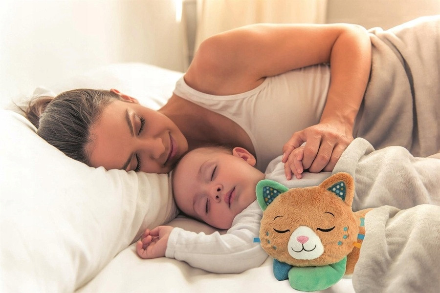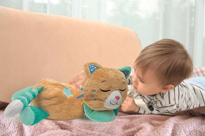 A játék speciális rezgéssel rendelkezik, amely a macska dorombolását utánozza, és édes dallamokkal párosítva megnyugtatja a gyermeket és segít neki elaludni.