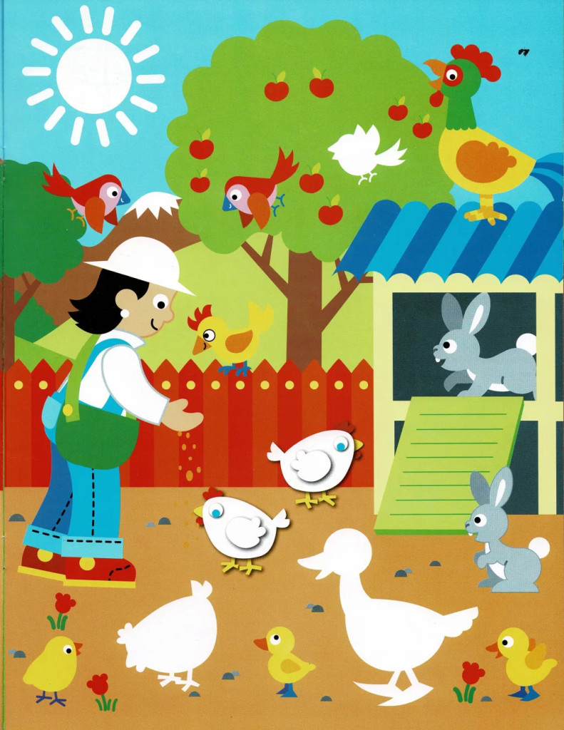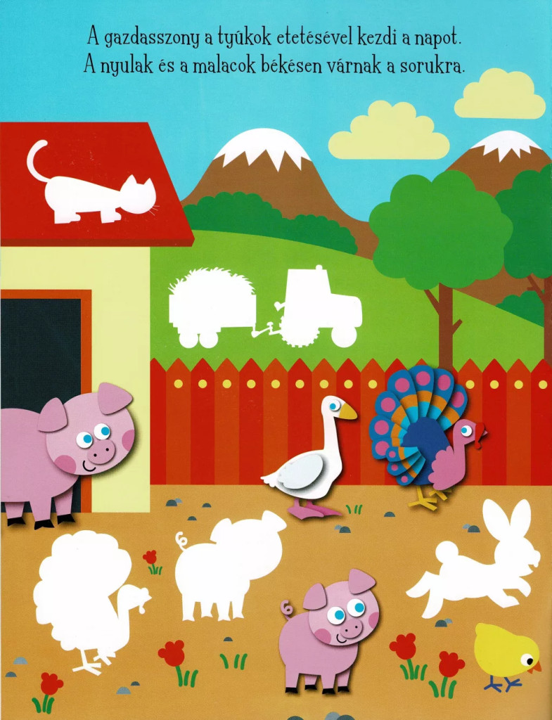 A füzetben a gyerekek bepillanthatnak a tanyasi élet mindennapjaiba. A kakas hajnalban kukorékolva ébreszti az udvar lakóit, a gazdasszony gondosan eteti a tyúkokat, nyulakat és malacokat, míg a gazda a kertjében dolgozik, hogy szép és egészséges zöldségek és gyümölcsök teremjenek. A legelőn békésen legelésző tehenek, juhok és lovak idilli képe még közelebb hozza a természet szeretetét a kicsikhez. A nap végén a gazda hazavezeti a traktort, lezárva a tanyasi nap eseményeit.
