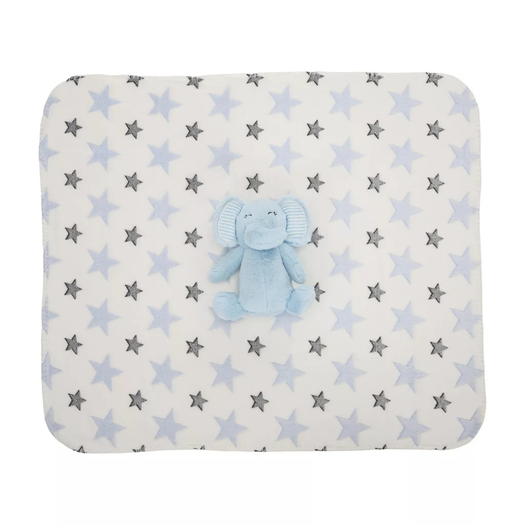 Pihe-puha takaró, kedves állatos plüssel. Tökéletes ajándék az újszülöttek számára, akár babaváróra.