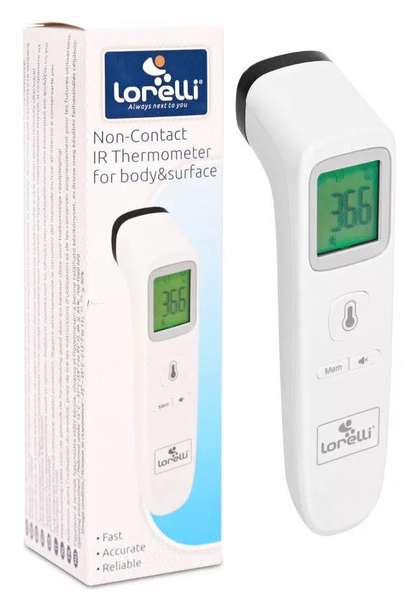 A Lorelli Non Contact hőmérővel érintés nélkül mérhetjük a gyermek vagy bármilyen felület hőmérsékletét. Kicsi és gyorsan használható, így a beteges napokat is megkönnyíti!