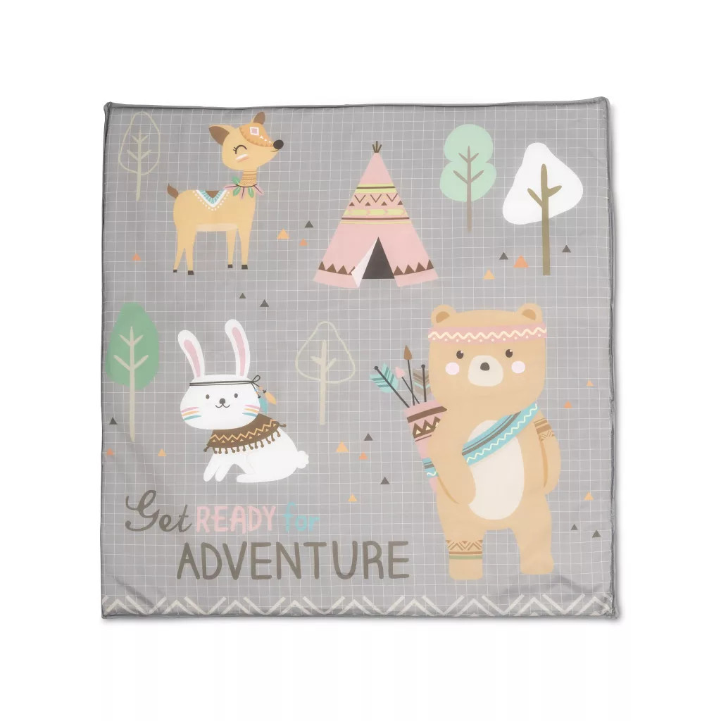 Színes és mintás tágas játszóhely 6 hónapos kortól. Könnyedén összecsomagolható és hordozható.