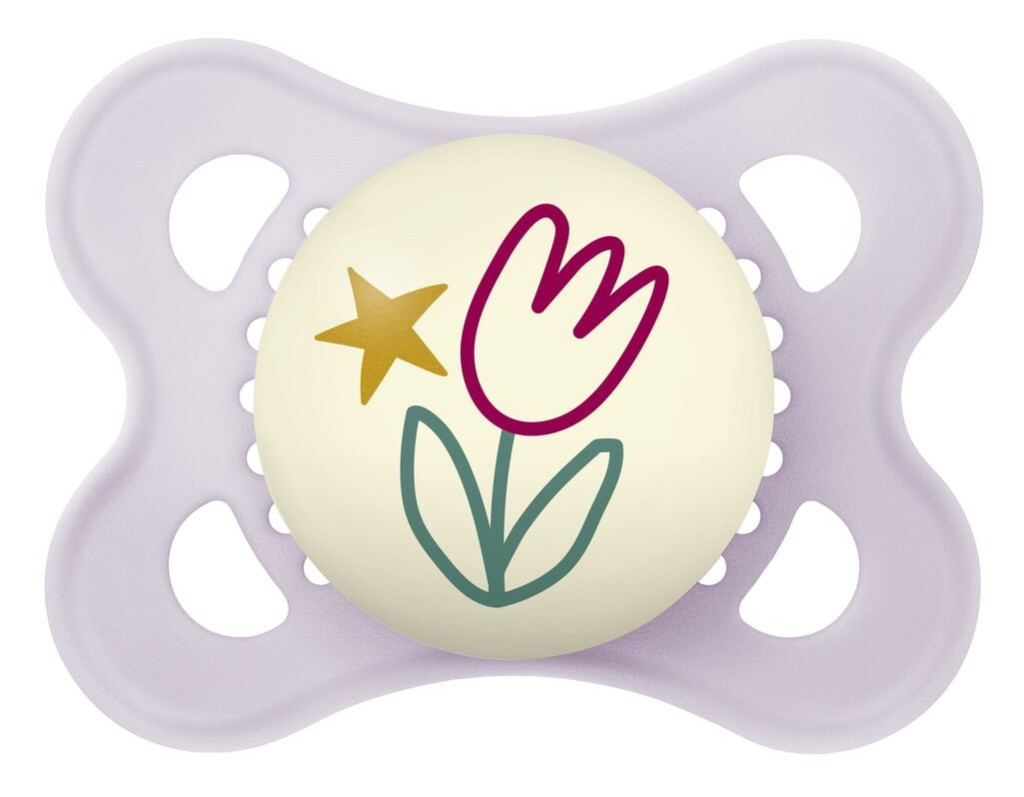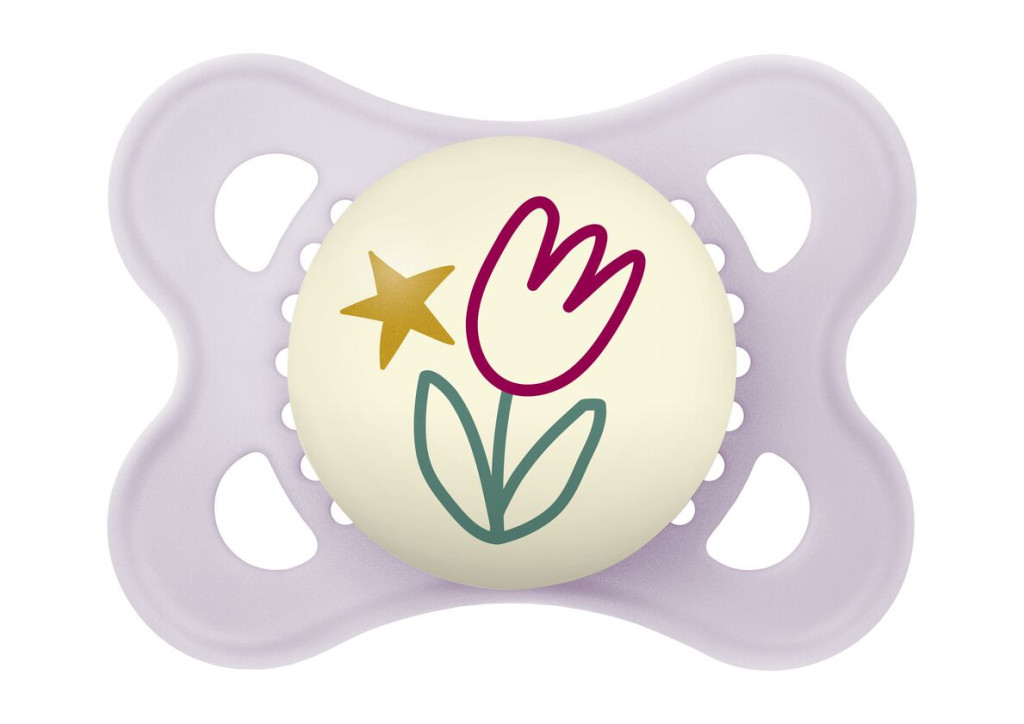 Sötétben világító cumi – könnyű megtalálni, mert a gombja világít A nagyméretű levegőnyílásoknak és az egyedülálló MAM belső mélyedéseknek köszönhetően kíméli a bőrt