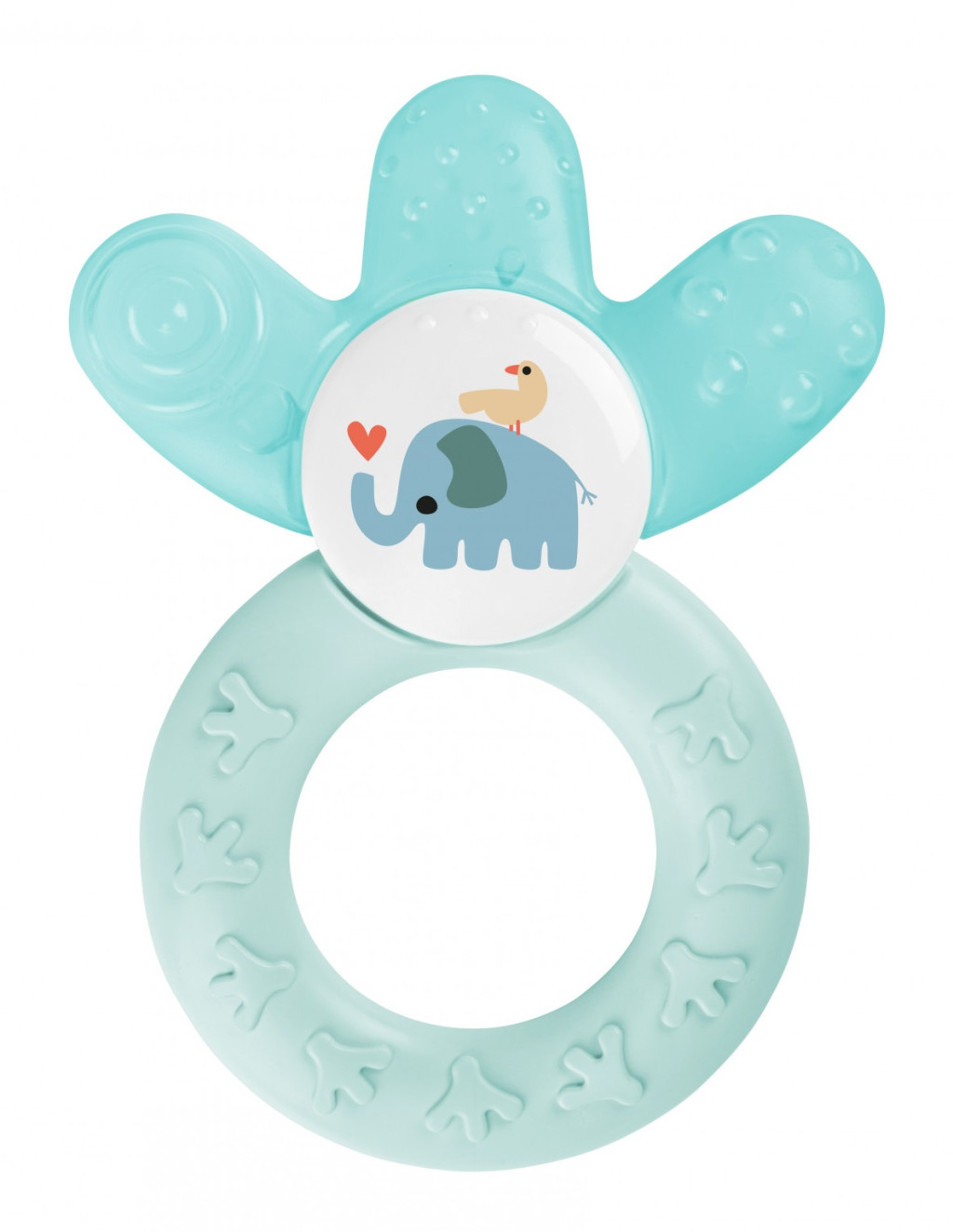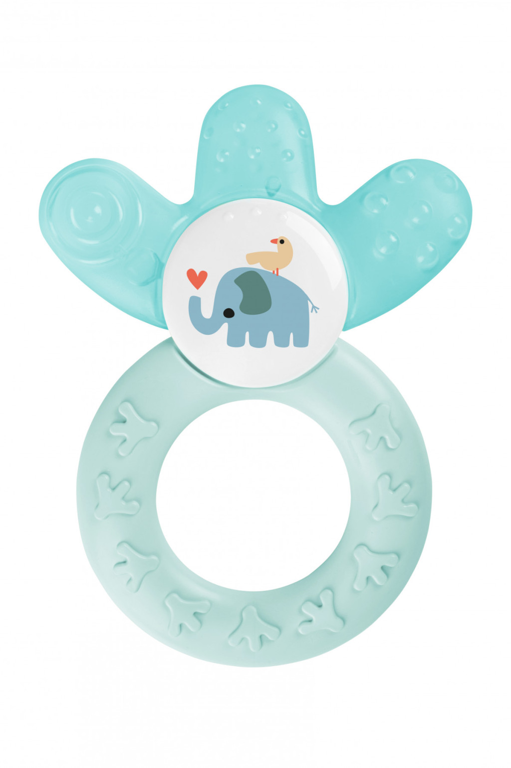 Az egyedülálló forma tökéletesen elér a hátsó fogakhoz. Hűt és nyugtat. A kiemelkedések masszírozzák az érzékeny ínyt.