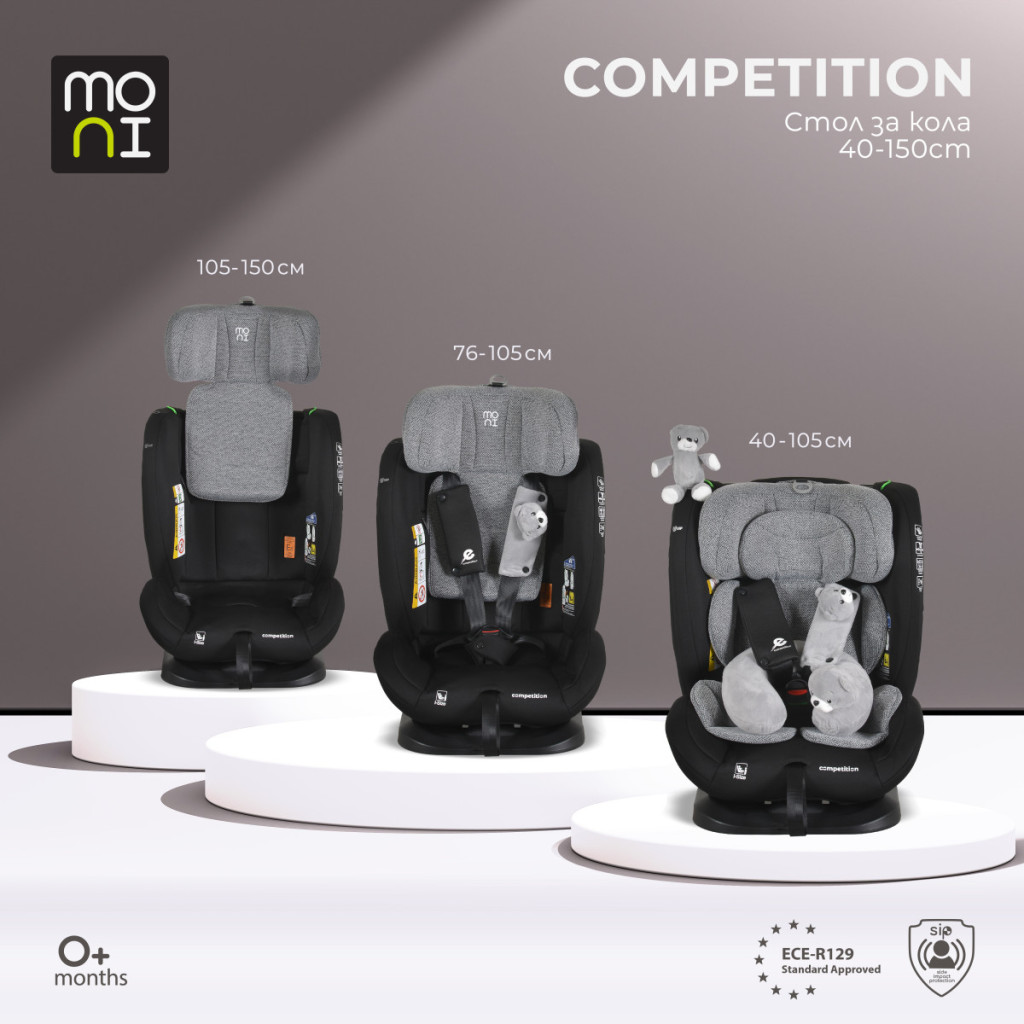 A Moni Competition egy innovatív autósülés, amelyet úgy terveztek, hogy a legmagasabb szintű védelmet és kényelmet biztosítsa gyermekének – az első hónapoktól az autósülés használatának végéig.