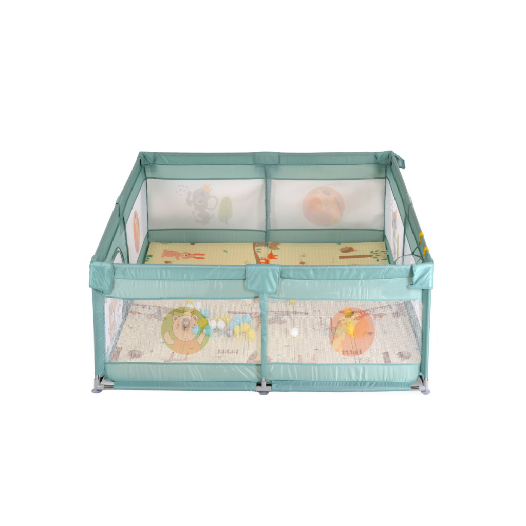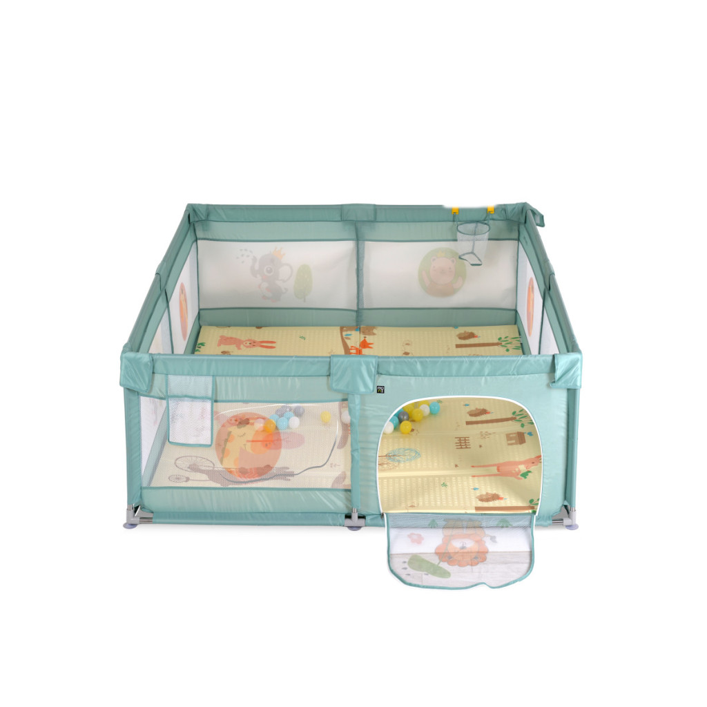 Moni Game Zone összecsukható járóka szőnyeggel, 60 labdával 120x120cm - Menta