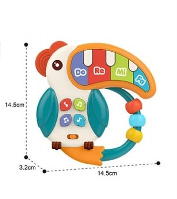 Vidám zenét játszó bébijáték, amely élénkíti a baba figyelmét.