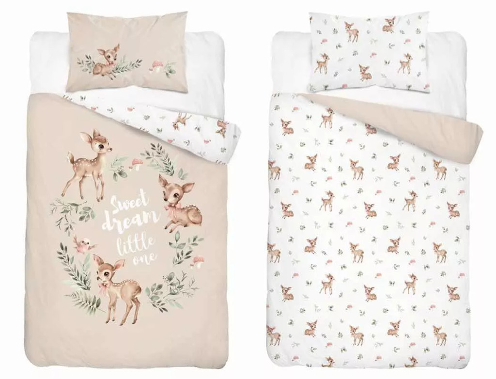 Pamut ágynemű huzat 100*135 cm - Kis őzikék bézs