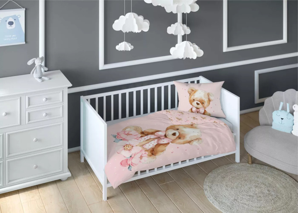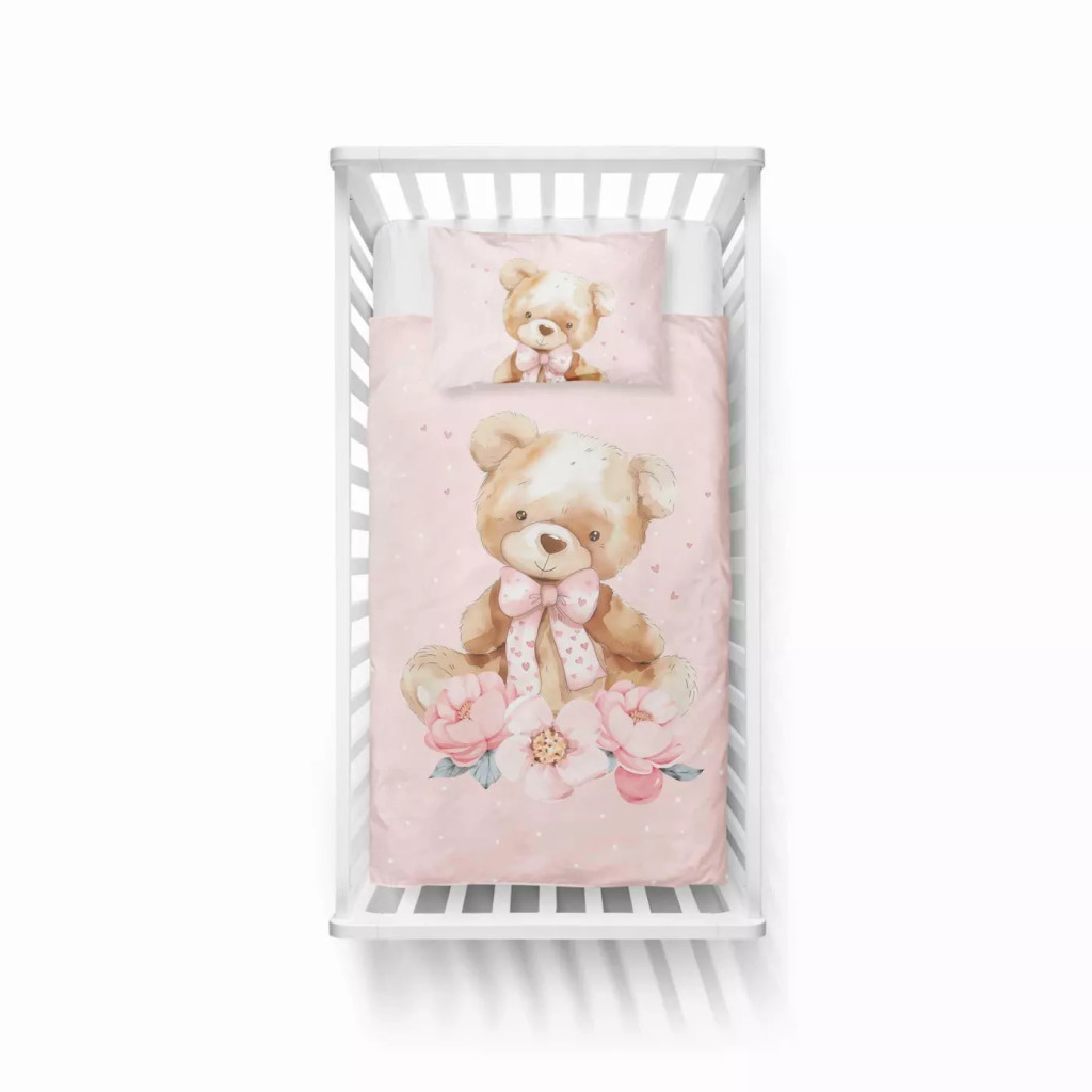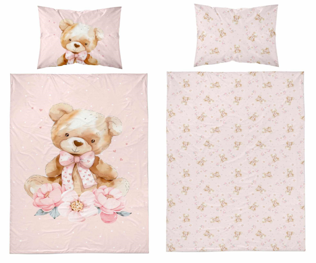 Pamut ágynemű huzat 100*135 cm - Maci púderrózsaszín