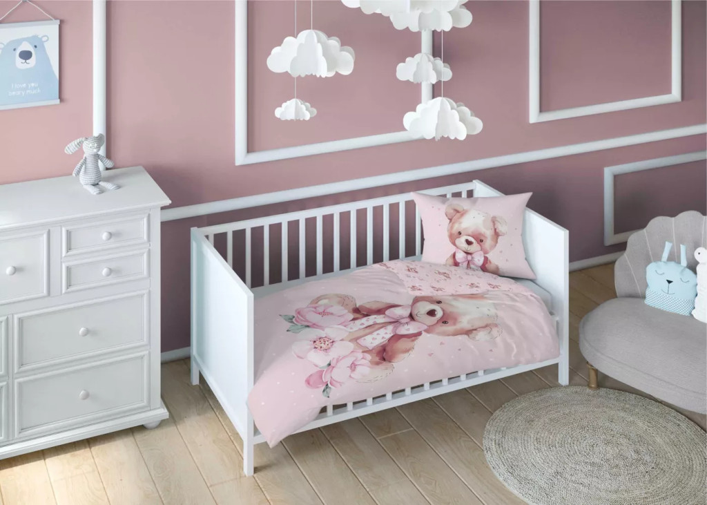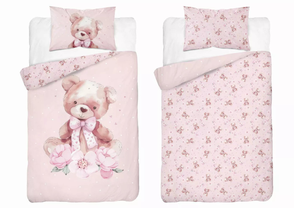 Pamut ágynemű huzat 100*135 cm - Maci rózsaszín