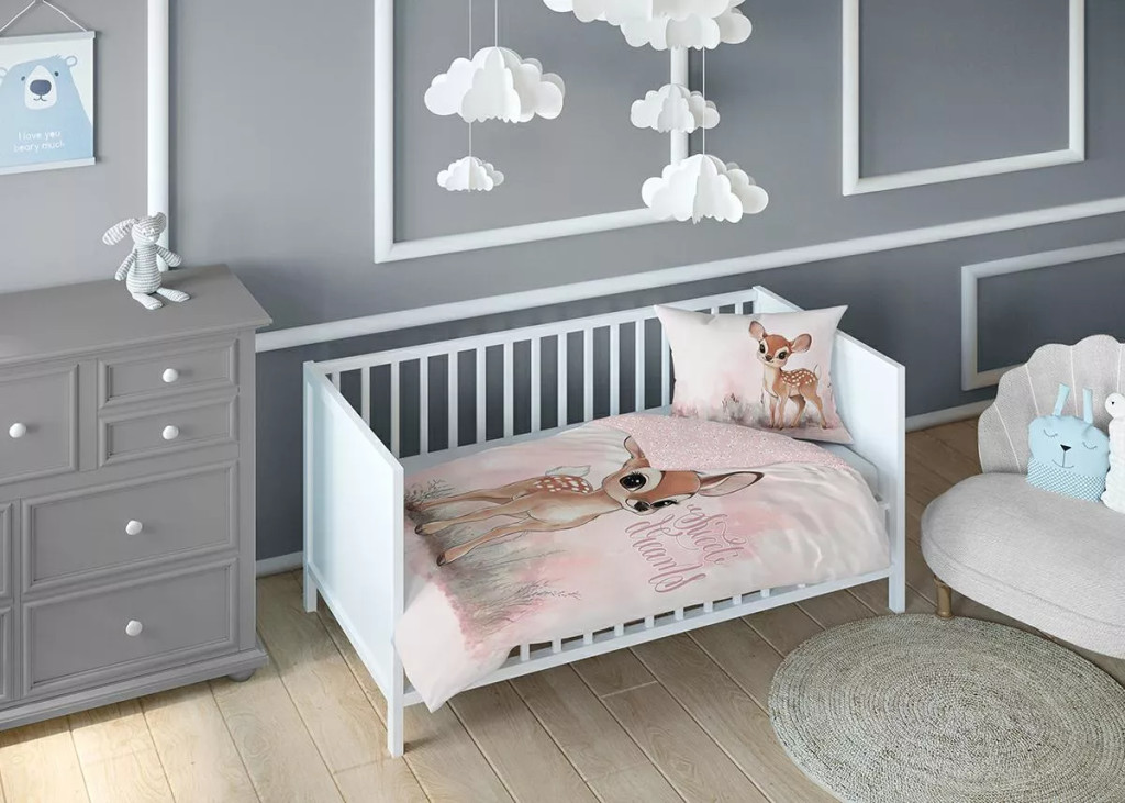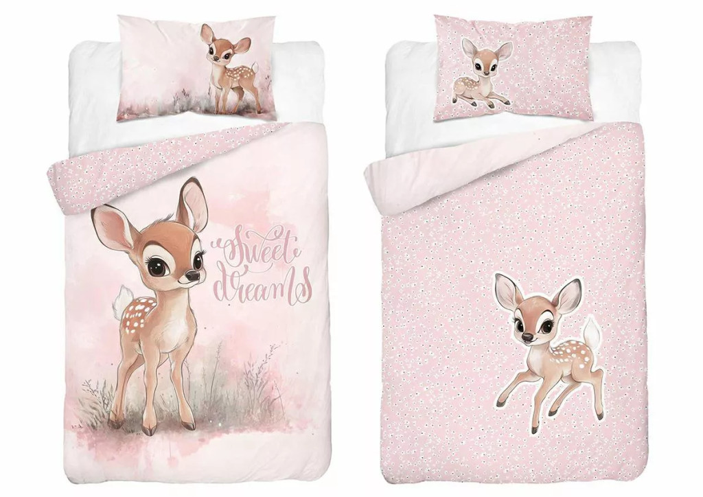 Pamut ágynemű huzat 100*135 cm - Őzike púderrózsaszín