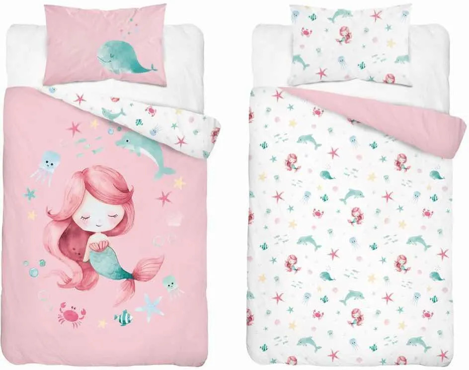 Pamut ágynemű huzat 100*135 cm - Sellő púderrózsaszín