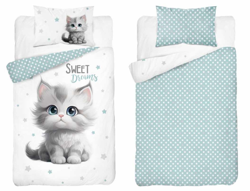 Pamut ágynemű huzat 90*120 cm - Cica kék