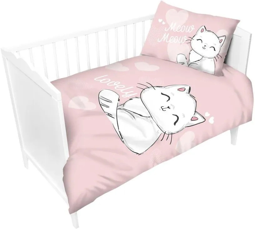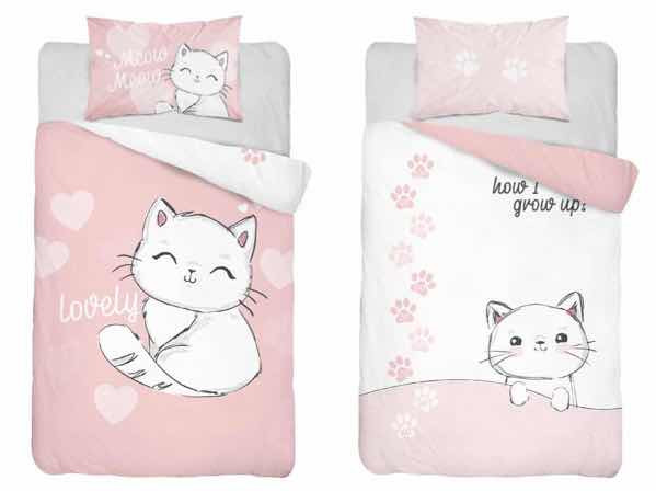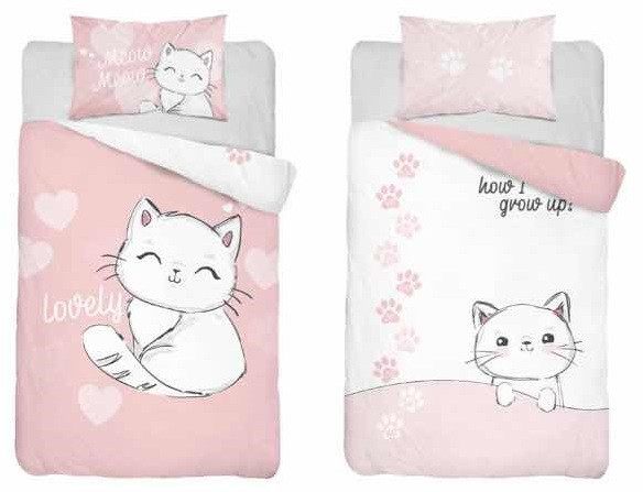 Pamut ágynemű huzat 90*120 cm - Cica púderrózsaszín