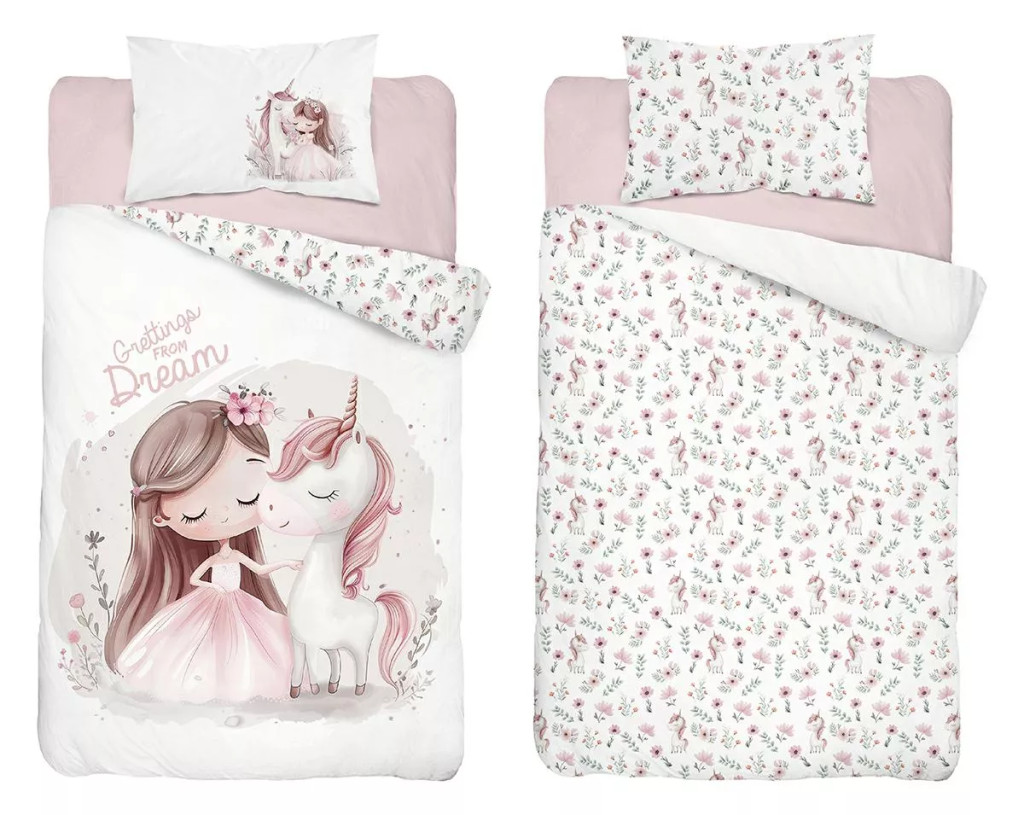 Pamut ágynemű huzat 90*120 cm - Egyszarvú rózsaszín