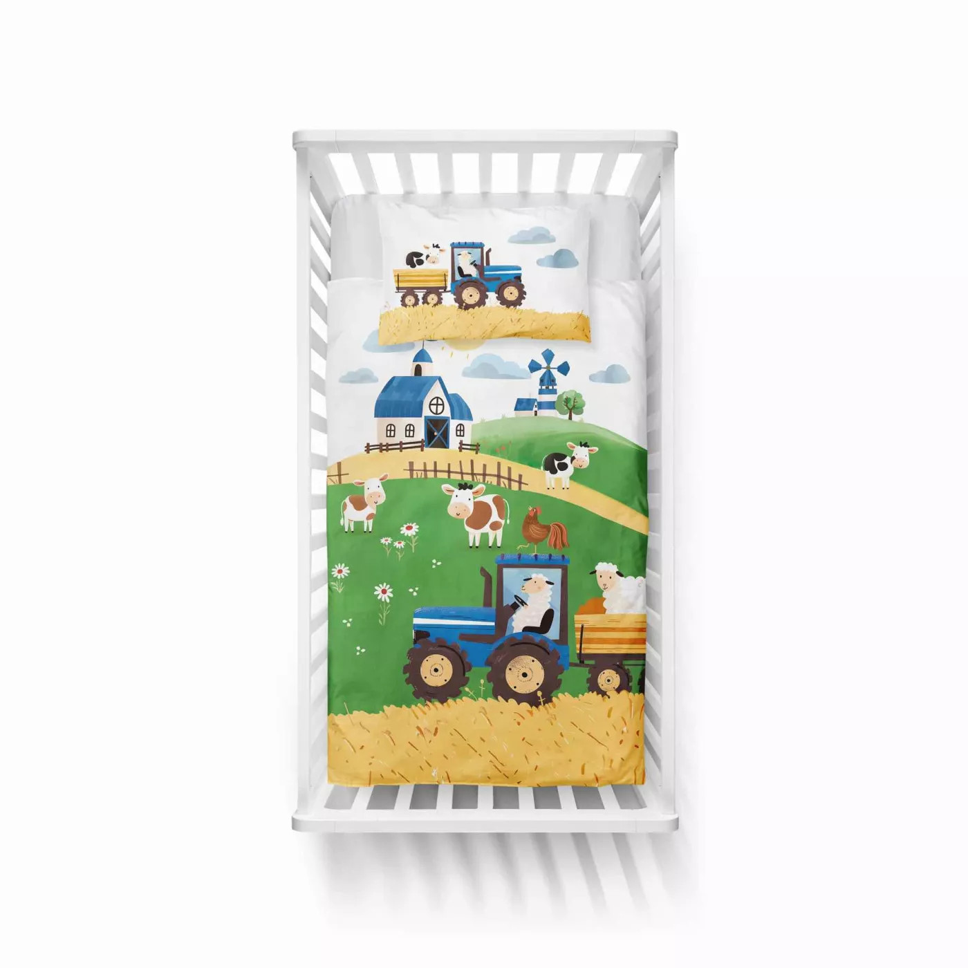 Pamut ágynemű huzat 90*120 cm - Napos farm kék traktorral