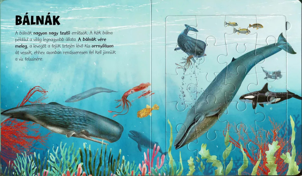 A puzzle-tevékenység fejleszti a térlátást, a mintafelismerést és a részletek összehangolását. A víz alatti témák különösen alkalmasak arra, hogy a gyerekek gyakorolják a hasonló árnyalatok közti különbségek észrevételét, a formák finom elhatárolását és a türelmes építkezést. A kész képek ráadásul sok beszélgetési lehetőséget adnak: mi történik a jelenetben, milyen mozgások érzékelhetők, milyen kapcsolatban lehetnek az élőlények a környezetükkel – mindez játékosan bővíti a szókincset és a világismeretet.