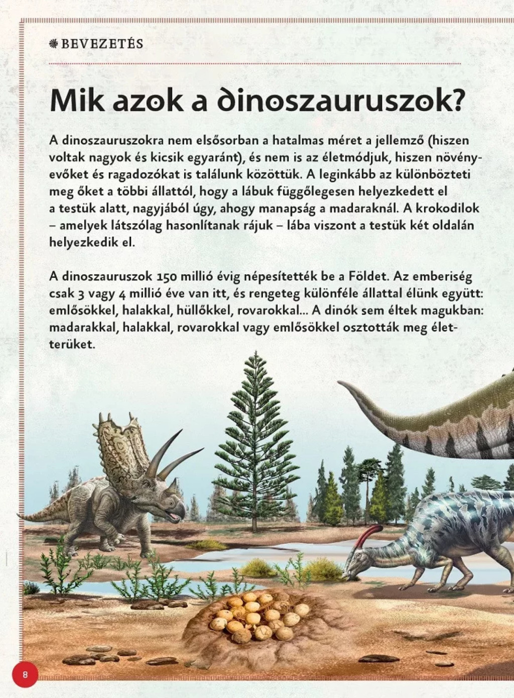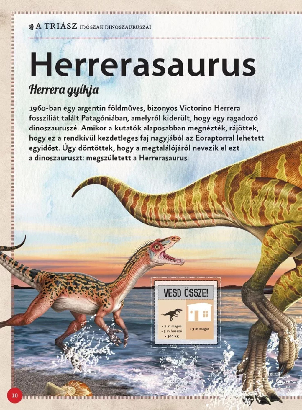 Vizsgáljuk meg együtt a varázslatos dinókat! Hihetetlen, de igaz: a dinoszauruszok már 150 millió évvel ezelőtt benépesítették a bolygót, míg mi, emberek, csupán 3-4 millió éve létezünk. Hogyan tűnhettek el? Ebben az útmutatóban rengeteg dinoszauruszt ismerhetsz meg, a ma ismert legelsőktől a legkésőbb megjelentekig. Olvass a Herrerasaurus, Eoraptor vagy a Tyrannosaurus rex megjelenéséről, szokásairól. A varázslatos illusztrációk segítenek neked abban, hogy magad elé képzelhesd ezeket a lenyűgöző teremtményeket.