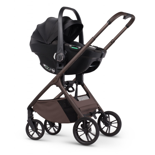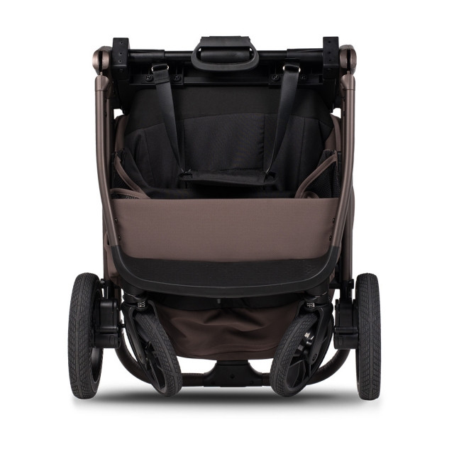 A váz masszív, mégis könnyű alumíniumból készült. Rendkívül tartós és biztonságos, így az aktív életmódot folytató szülőknek tökéletes választás. A babakocsi könnyen irányítható és kezelhető. A nagy méretű, defektmentes kerekek gördülékenyen forognak és a rugós felfüggesztésének köszönhetően nagyszerűen irányítható minden terepen.