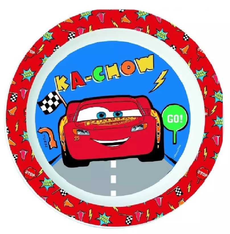 A színes lapostányér Cars kollekcióból sokkal érdekesebbé teszi az etetéseket.