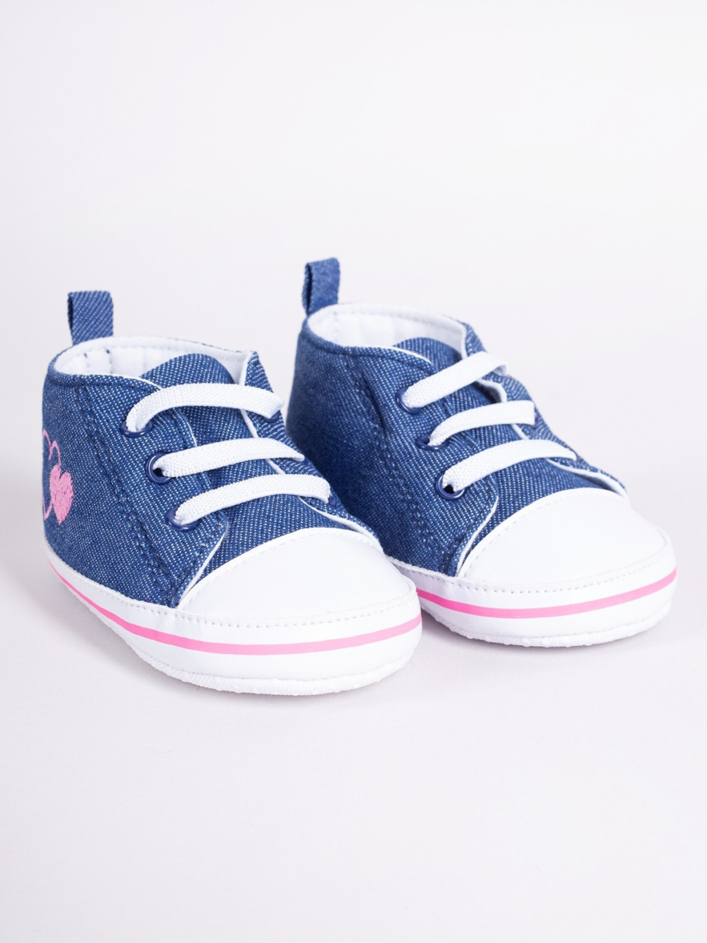 Yoclub Bébi Cipő 0-6 hó - Kék /rózsaszín szívecskével