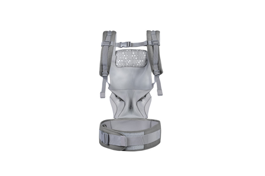 A tépőzárral ellátott széles, állítható derékpánt és a párnázott vállpántok egyenletesen osztják el a súlyt, védve a szülő hátát és derekát.