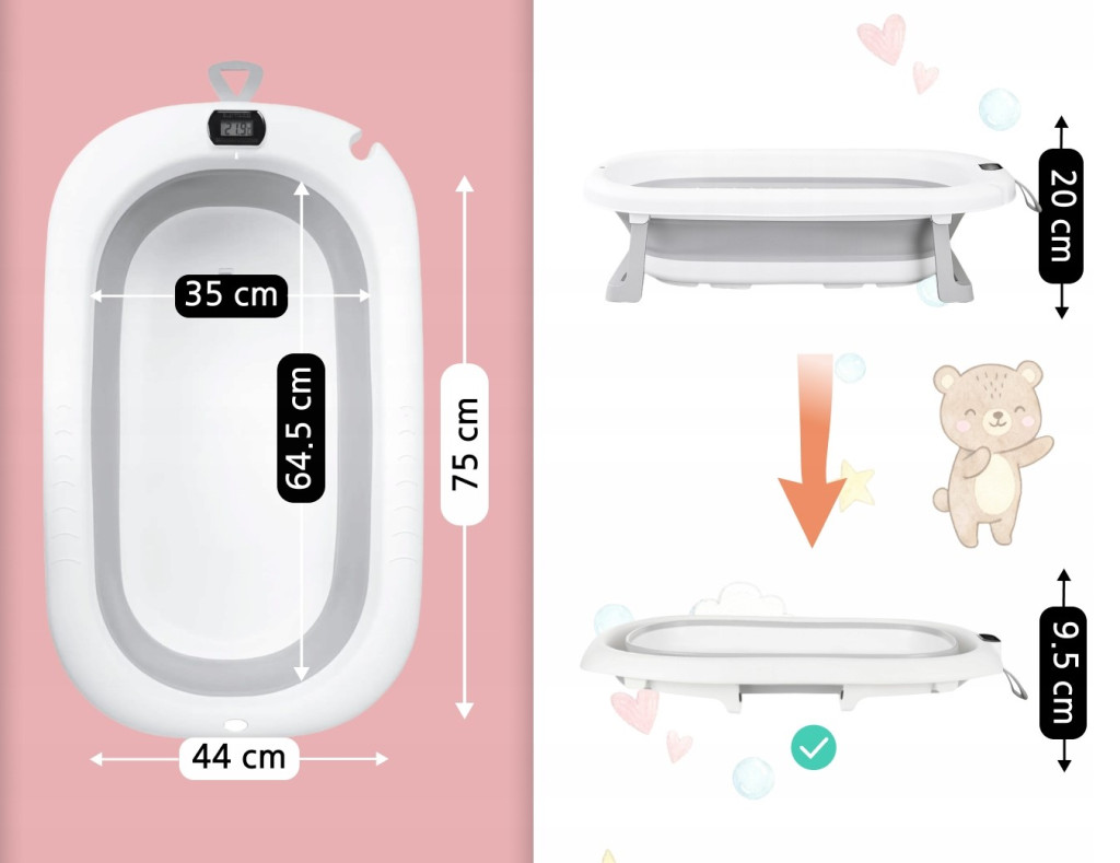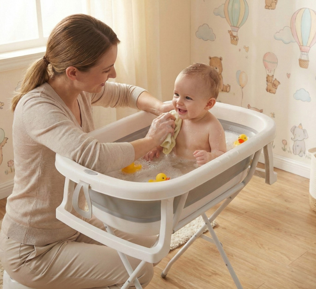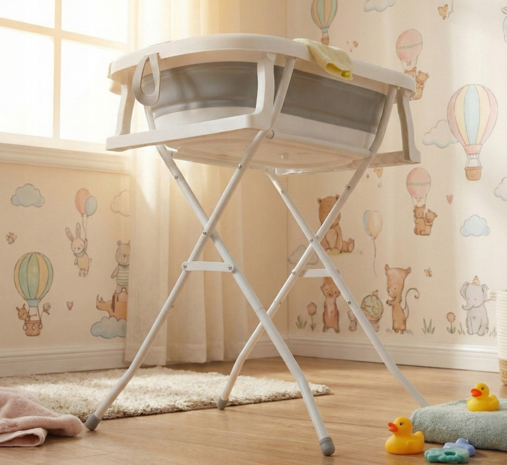 A csecsemők és kisgyermekek számára készült összecsukható babakád, kiváló kiegészítője a kisebb fürdőszobáknak hiszen összecsukva kis helyen is elfér.