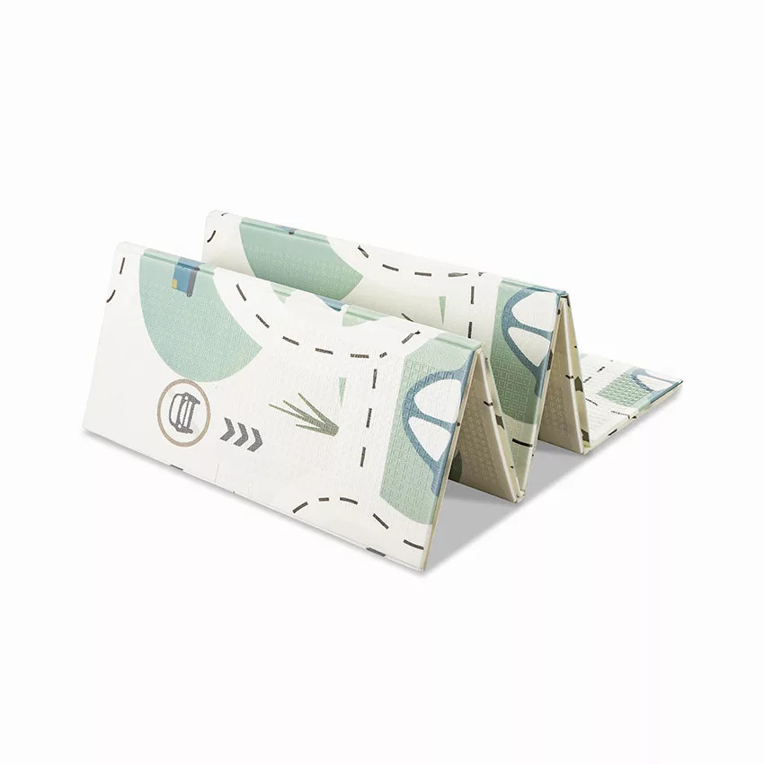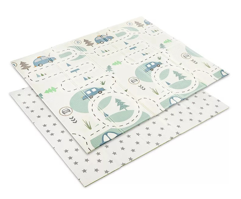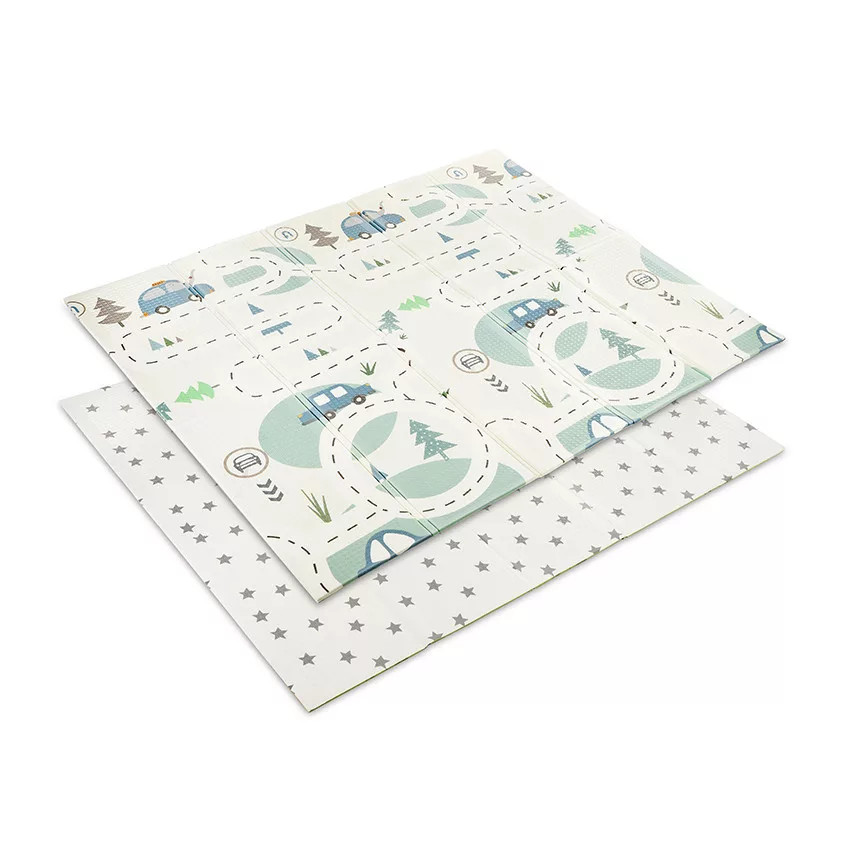 Lorelli Összehajtható játszószőnyeg 180x200cm 2 oldala különböző mintákkal díszített.