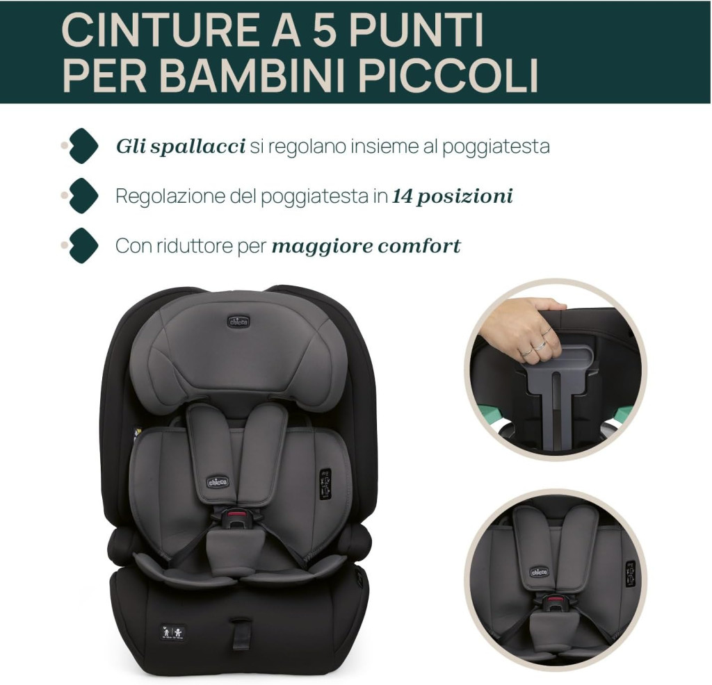 - 76 - 105 cm-ig (15 hó - 4 év, 1-es korcsoport): az ülést az autó 3 pontos biztonsági övével rögzítjük menetiránnyal megegyező irányban, a gyermeket az ülés 5 pontos övével kötjük be.